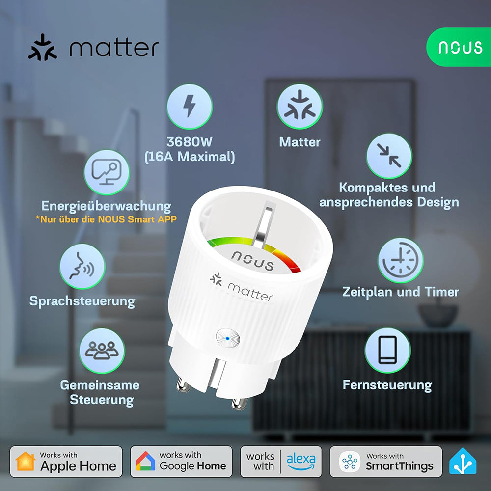 4X Nous A8M 16A 3840W Verbrauchsmessung Matter Smart Socket - Alexa - Google