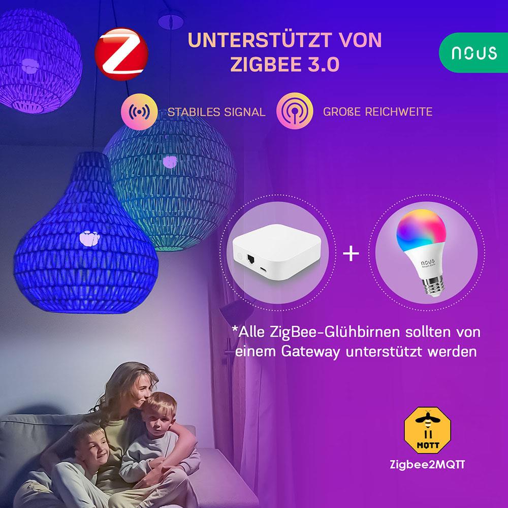 4X NOUS P3Z Smart LED ZigBee 3.0 Bulb Lampe RGB 9 Watt E27 Sockel A60 2700-6500K