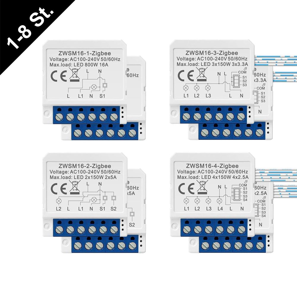1-8X AVATTO ZWSM16 ZigBee 3.0 1-4 Kanal Smart Switch Modul Lichtschalter TUYA