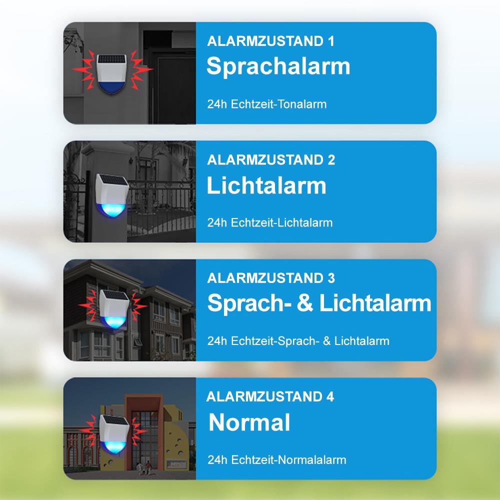 Kabelloser Betrieb - Solarladung: Die Sirene kann kabellos betrieben werden - du musst sie nicht in der Nähe einer zugänglichen Steckdose montieren oder dich um Kabel sorgen. Der langlebige 18650-Akku sorgt für eine lange Betriebsdauer, und das eingebaute Solarpanel ermöglicht eine Aufladung in nur etwa 6-8 Stunden. Bei schlechtem Wetter kannst du die Sirene über das USB-C-Kabel aufladen. Mit NEO bist du auf jede Situation vorbereitet!