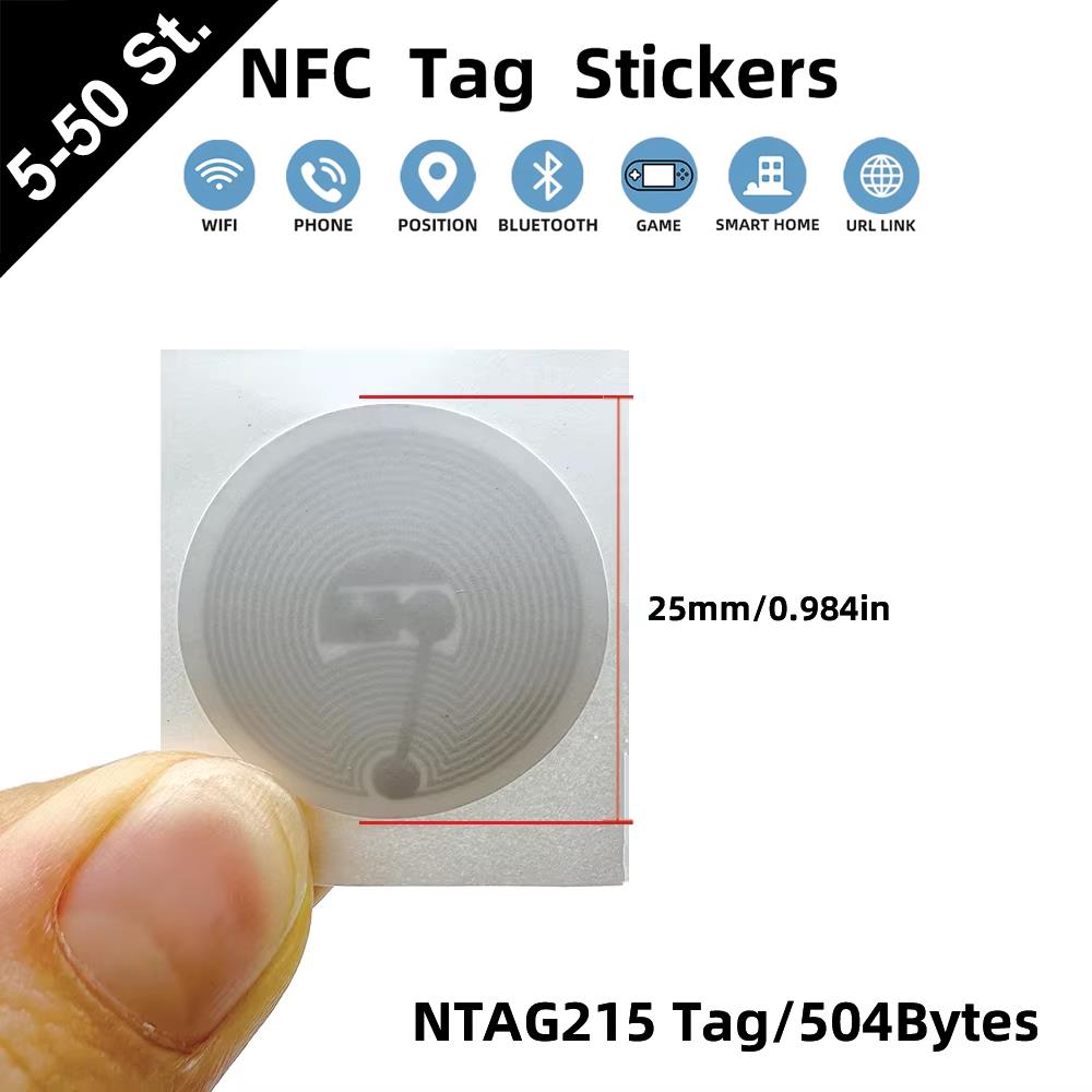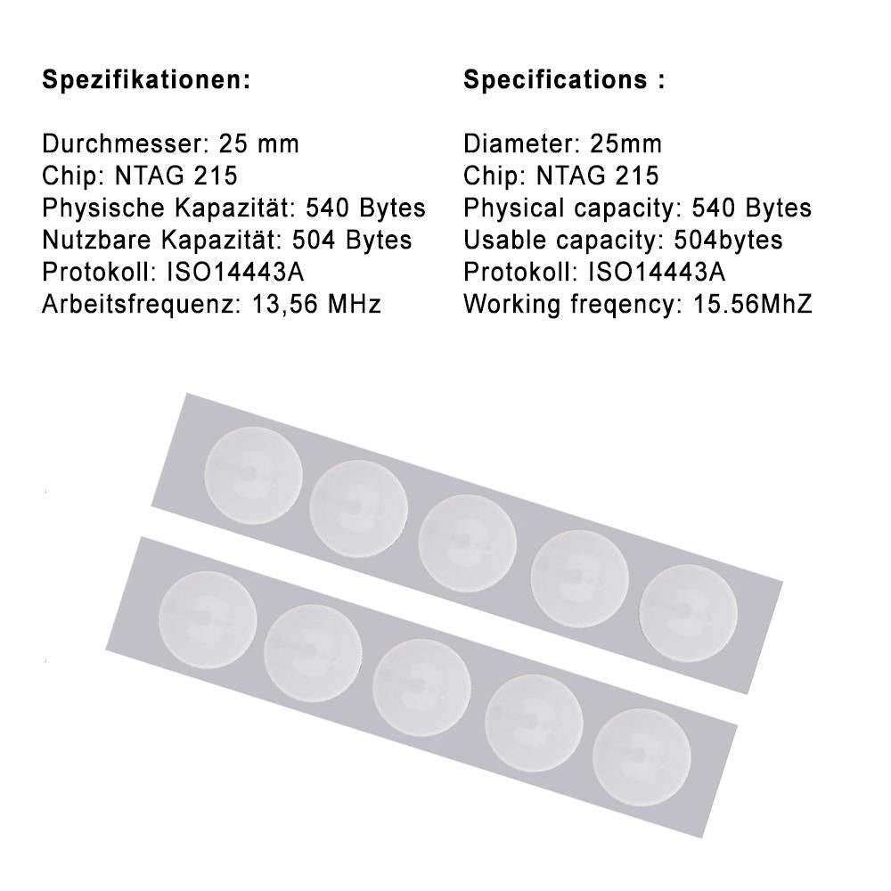 NFC Tag NTAG215 Sticker weiß 25mm 540/504bytes iOS Android Home Assistant