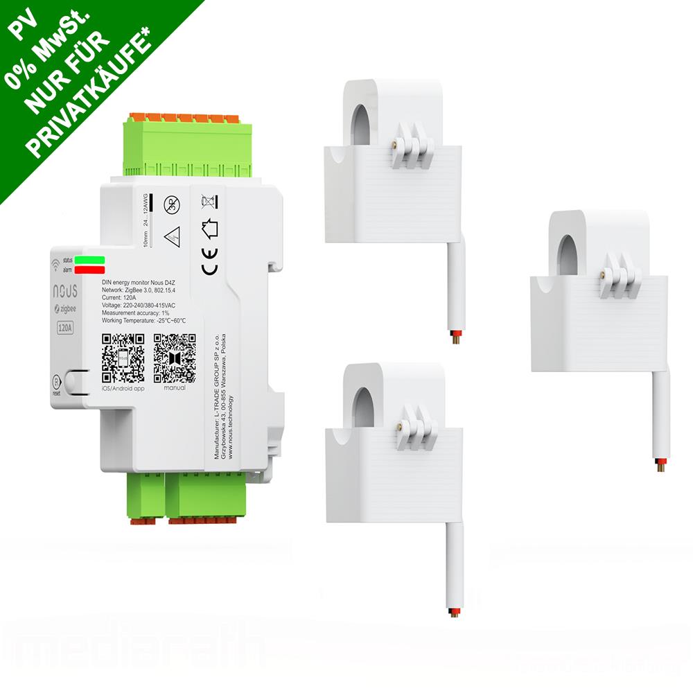 Der Nous D4Z ist ein intelligenter Energiemonitor, der aus einer Haupteinheit mit einer Breite von 18 mm besteht, die auf einer DIN-Schiene montiert wird und nur 1 mW verbraucht. Zusätzlich enthält er drei Stromwandler mit geteiltem Kern. Das Gerät fungiert als professionelles dreiphasiges Energiemessgerät und misst in Echtzeit präzise Spannung, Strom, Leistung und Energie. Es unterstützt bidirektionale Messungen und ist somit ideal für Anwendungen wie Photovoltaikanlagen. Der Nous D4Z ist vollständig kompatibel mit Zigbee2MQTT und Home Assistant (ZHA wird aktuell noch nicht unterstützt), was eine nahtlose Integration in moderne Smart-Home-Systeme ermöglicht.