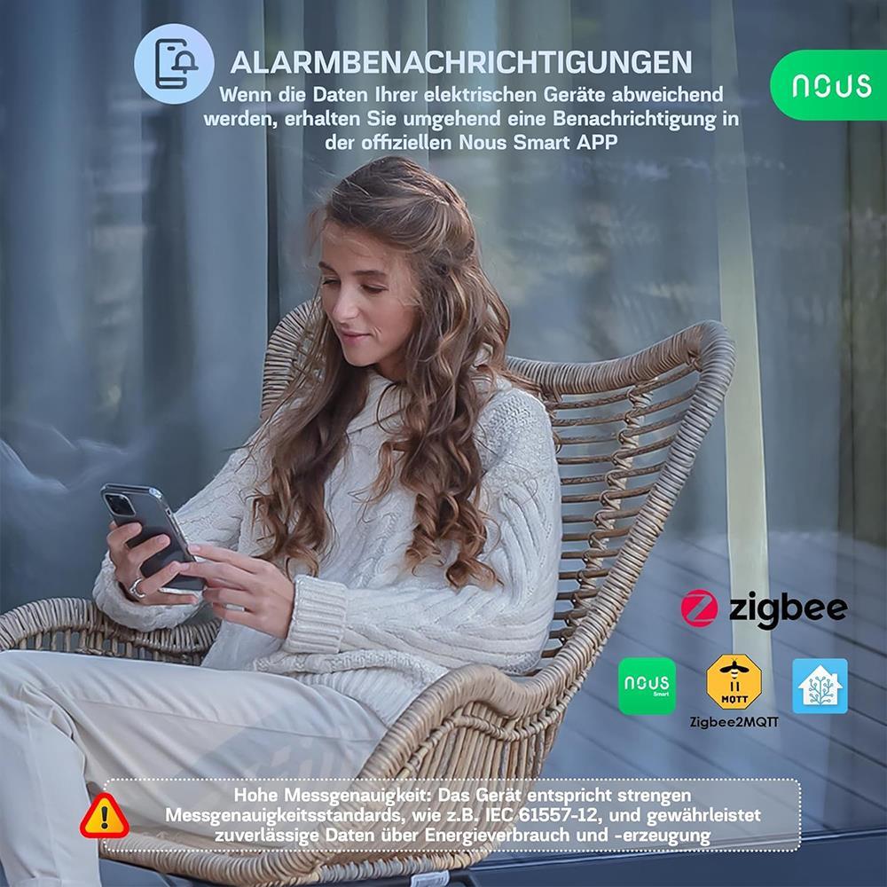 Präzise Energieüberwachung: Mit dem NOUS D4Z ZigBee Smart Stromzähler kannst du deinen Stromverbrauch in Echtzeit messen und deine Energienutzung im Haushalt oder Gewerbe effizient optimieren.