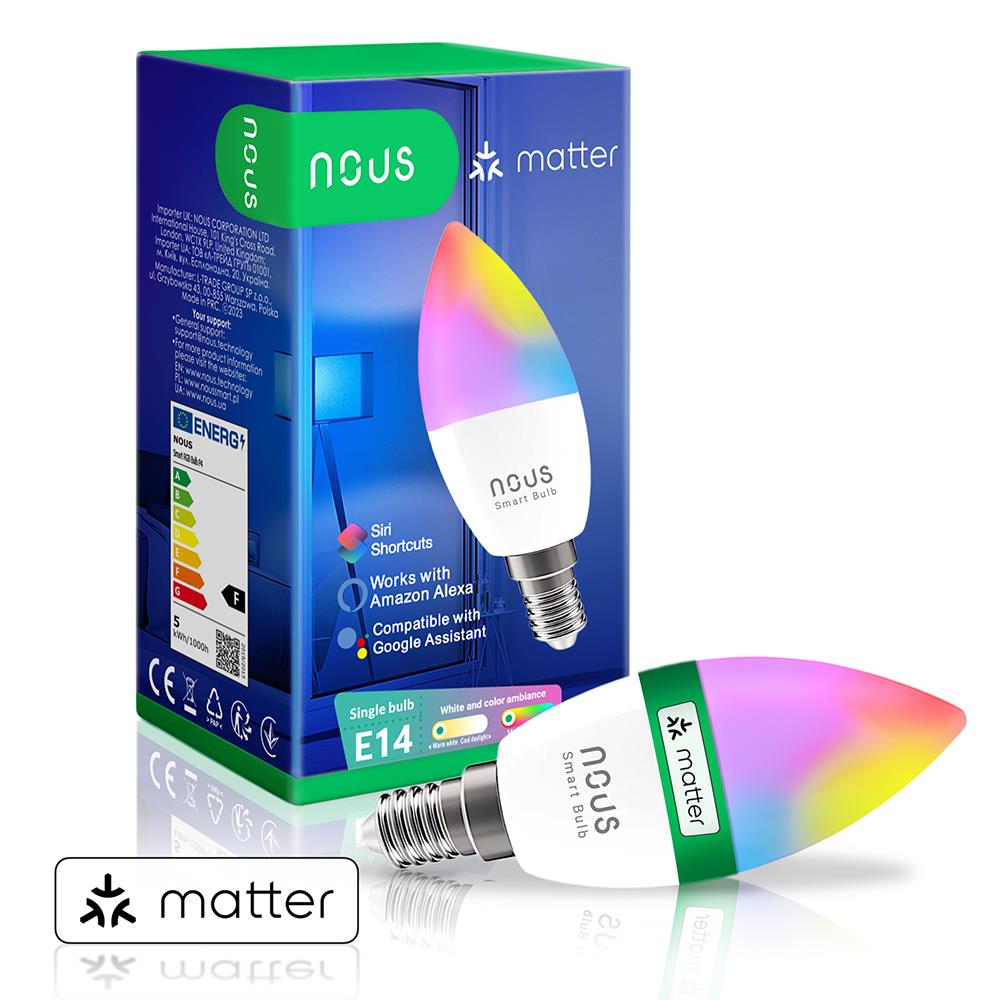 NOUS P4 Smart LED WiFi Matter Bulb Lampe RGB 4,5 Watt E14 Sockel 2700-6500K