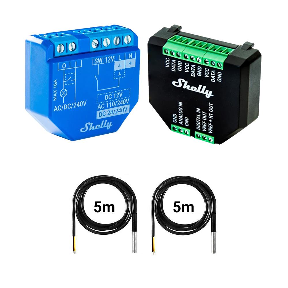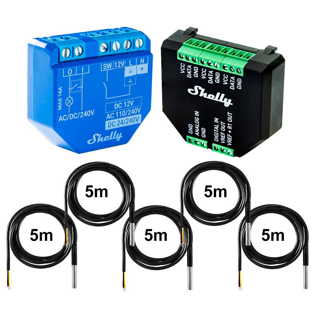 Shelly Plus 1 + Addon + 1x-5x DS18B20 5m