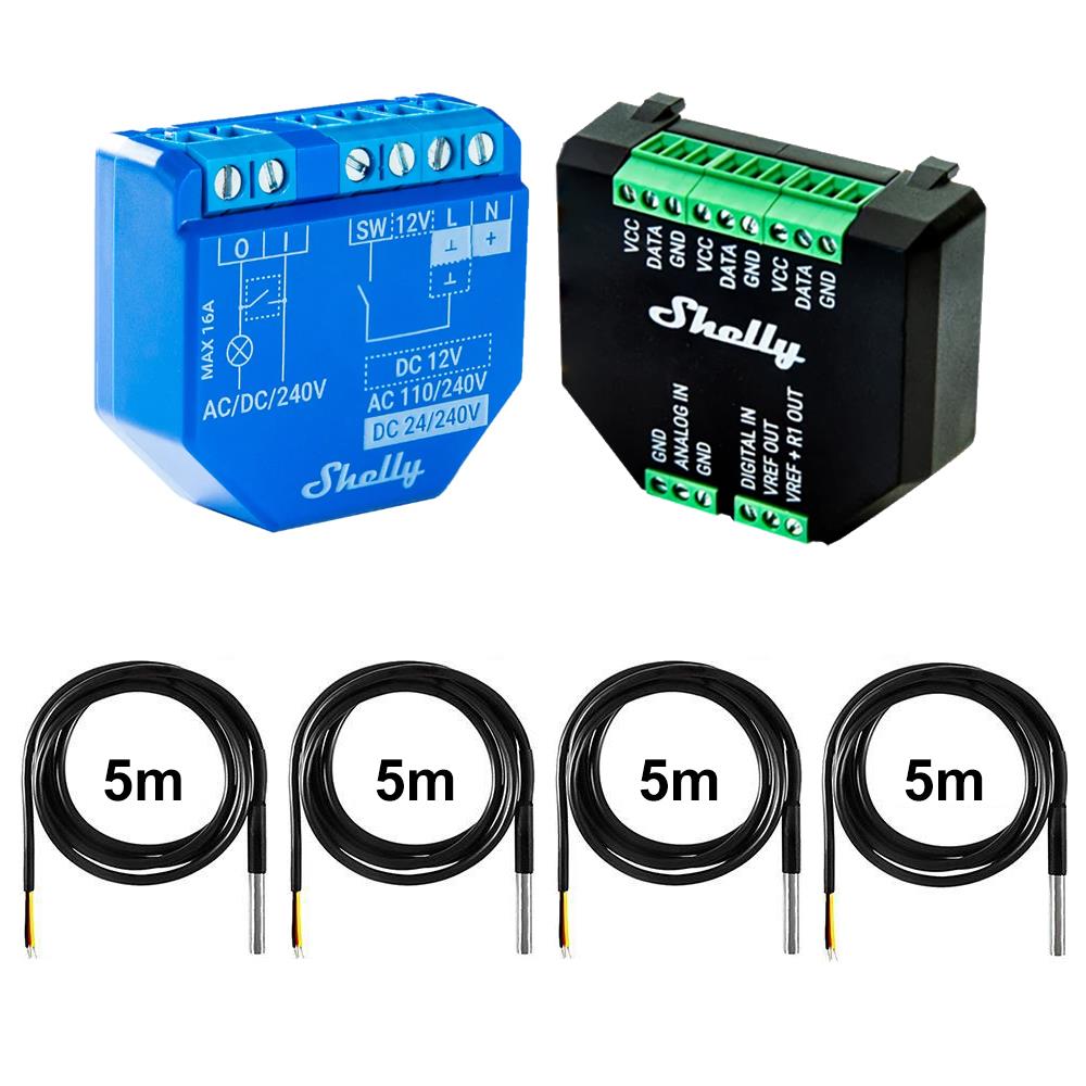 Shelly Plus 1 + Addon + 1x-5x DS18B20 10m