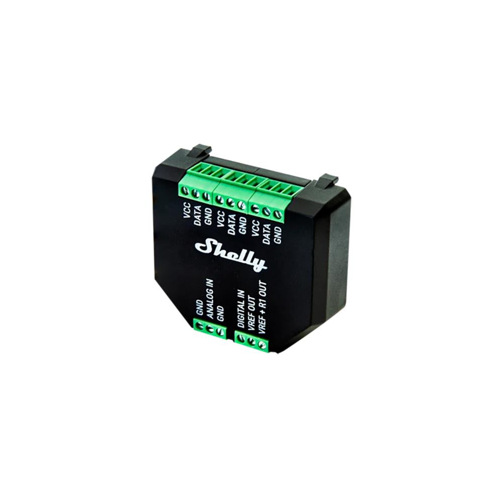 Präzises Messen und Steuern - Shelly Plus Add-on ist eine galvanisch getrennte Sensorschnittstelle für alle Shelly Plus Relais. Verwende das Add-on zur Messung von Temperatur und Luftfeuchtigkeit über seine 1-Wire-Anschlüsse oder verbinde verschiedene analoge und digitale Sensoren für komplexe Automatisierungen und höhere Effizienz.