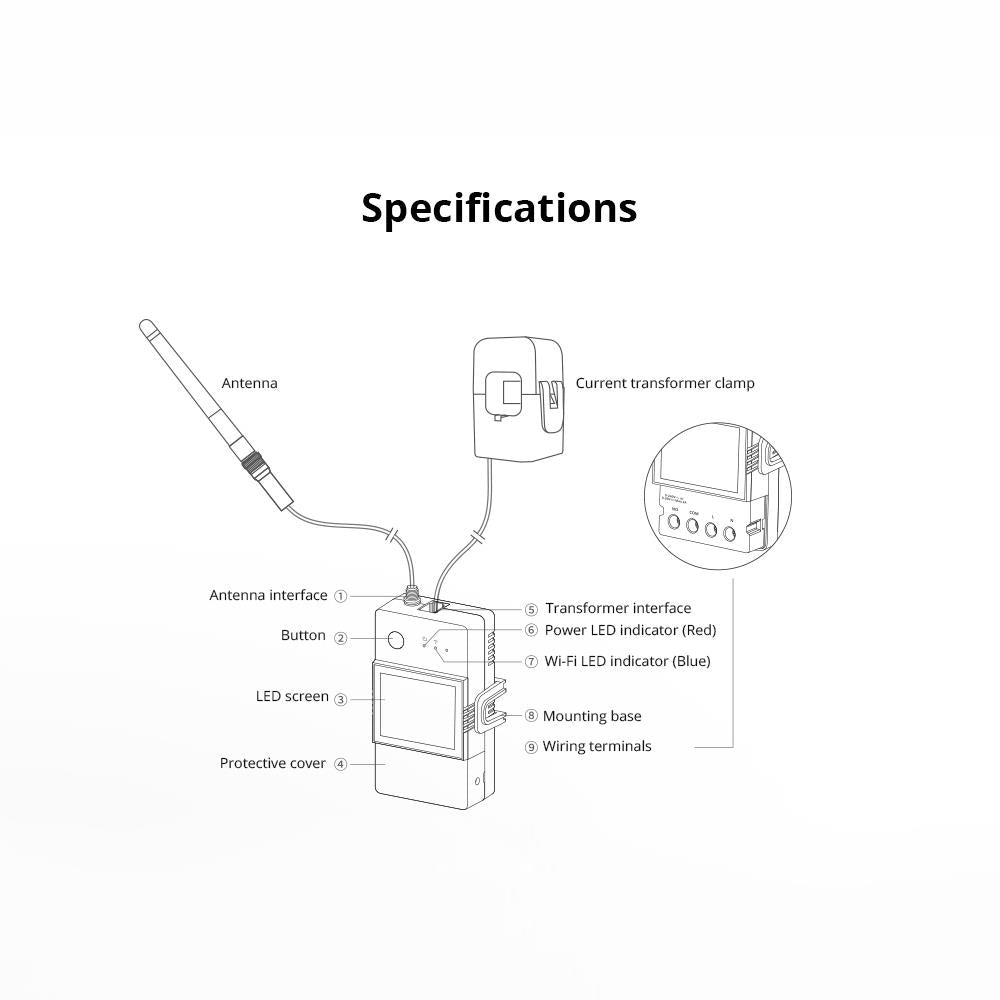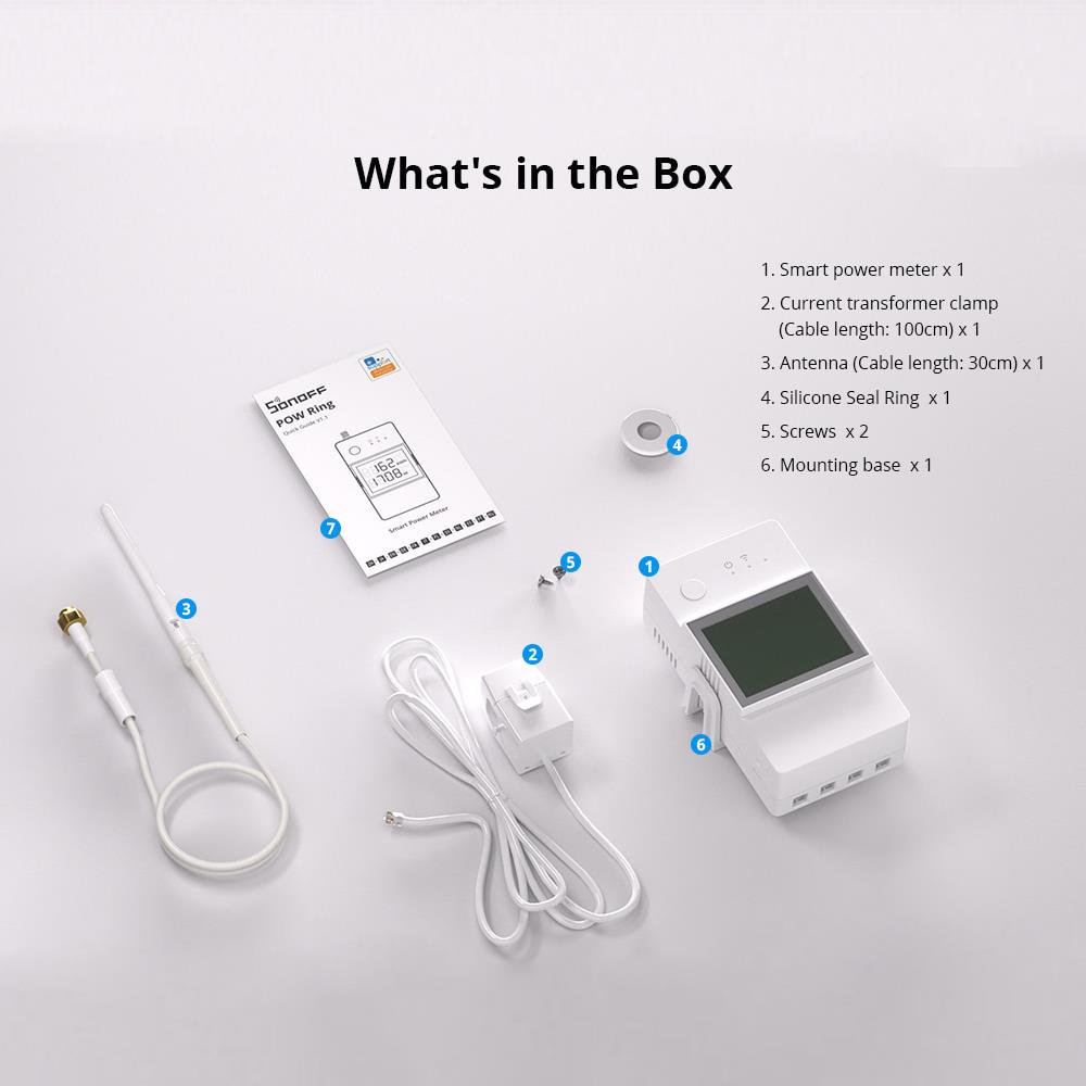 Stromverbrauchsmessgerät 100A WiFi POW Ring SONOFF POWCT (Stromsonde) - Der SONOFF POWCT ist ein innovatives Stromverbrauchsmessgerät, das moderne Technologie mit Sicherheit und Komfort kombiniert. Es ist mit einer Stromsonde ausgestattet, die einen Erkennungsbereich von bis zu 100A ermöglicht, was eine präzise Überwachung des Stromverbrauchs im Haushalt ohne physischen Kontakt mit stromführenden Leitungen erlaubt und somit das Risiko eines elektrischen Schlags eliminiert. Die zugehörige mobile App bietet eine intuitive Benutzeroberfläche, mit der du deinen Energieverbrauch in Echtzeit überprüfen, detaillierte tägliche, monatliche und jährliche Berichte erhalten sowie Daten in eine Datei exportieren kannst, um deine Gewohnheiten besser zu verstehen und Kosten zu optimieren. Dies macht den SONOFF POWCT zur idealen Lösung für eine sichere und effiziente Energieverwaltung in deinem Zuhause.