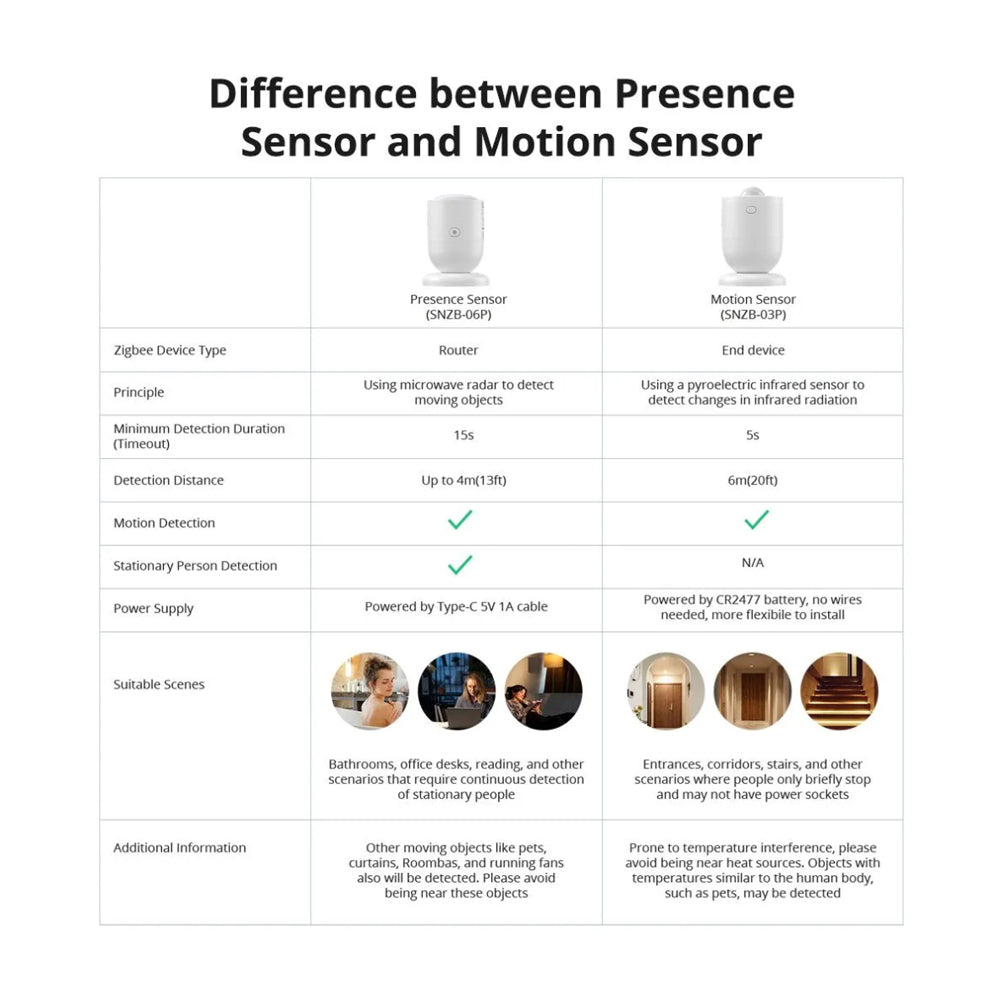 Im Vergleich zum SNZB-03 bietet der SNZB-03P eine verbesserte Leistung mit einer Erkennungsdauer von nur 5 Sekunden, intelligenter Umgebungslichterkennung und einer Batterielaufzeit von bis zu 3 Jahren.