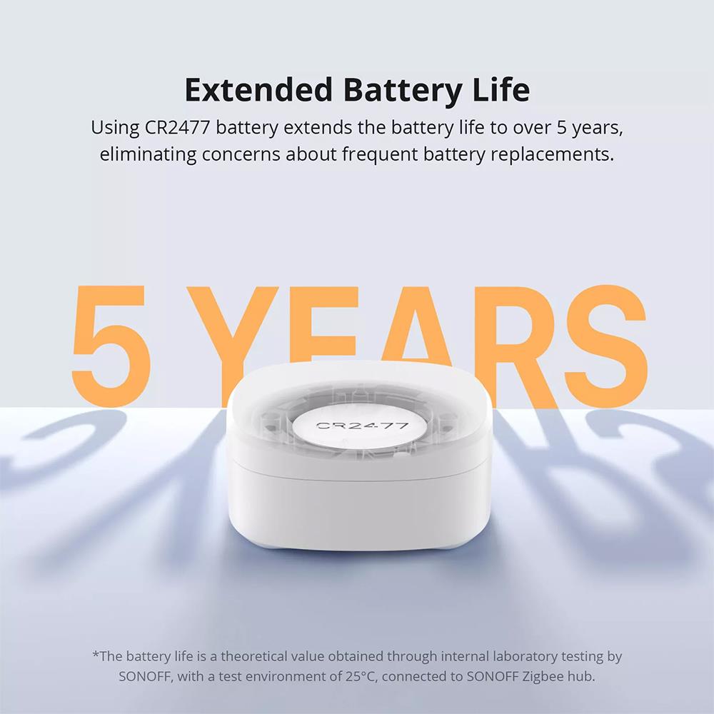 5 Jahre Batterielebensdauer: Der Sensor wird mit einer CR2477-Batterie betrieben, die eine Lebensdauer von über 5 Jahren ermöglicht und somit häufige Batteriewechsel überflüssig macht.