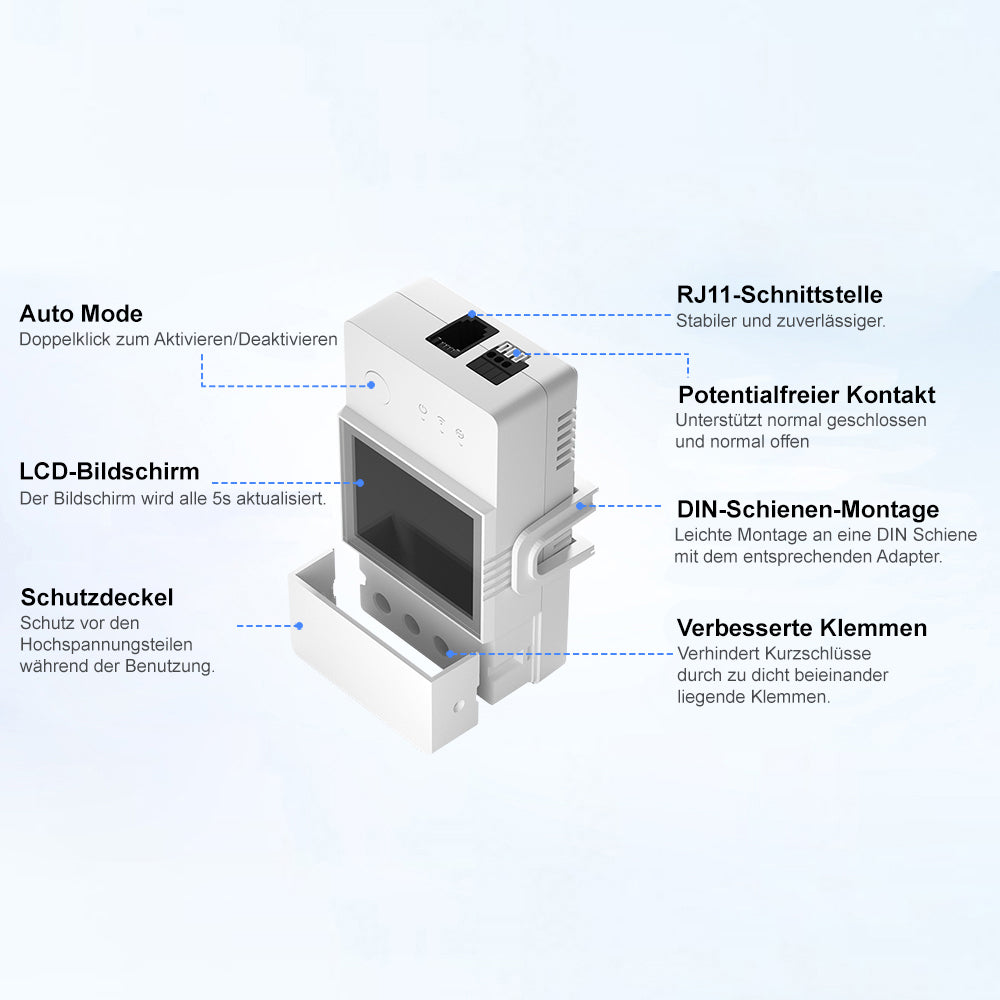 16A Maximale Last & Trockenkontakt Ausgang - Unterstützt maximal 16A Last. Der TH Elite ist dadurch mit mehr Haushaltsgeräten kompatibel. Zusätzlicher Trockenkontaktausgang / Potenzialfrei.
