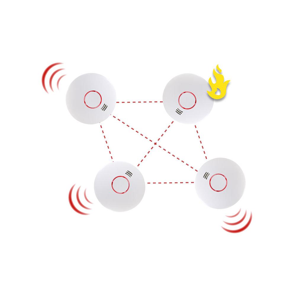 Drahtlose Verbindung von mehreren Rauchmeldern - Durch die Funkfunktion des Rauchwarnmelders ist es dir möglich bis zu 15 Melder der gleichen Serie drahtlos miteinander zu verbinden. Löst einer der vernetzten Rauchmelder aus, dann alarmiert er das komplette Netzwerk. So kannst duz sicherstellen, dass auch über mehrere Etagen und weitere Entfernungen alle Personen im Haus alarmiert werden. Die drahtlose Reichweite beträgt dabei 20 Meter, so dass du deine Melder flexibel anbringen kannst.